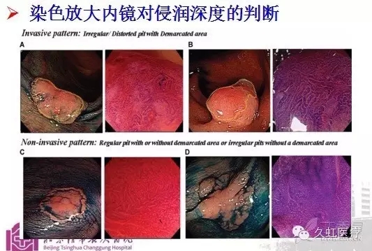 圖2. 染色放大內(nèi)鏡對(duì)浸潤(rùn)深度的判斷
